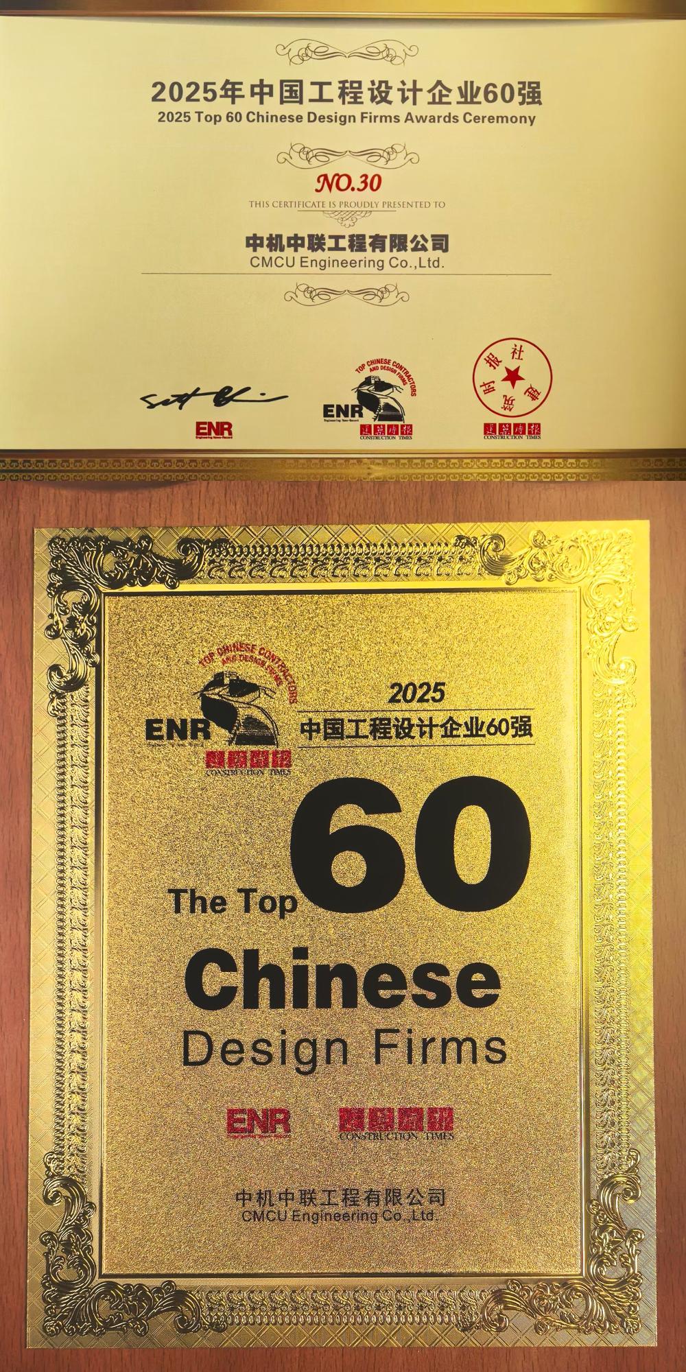 9月26日,美國(guó)《工程新聞?dòng)涗洝罚‥NR)雜志與中國(guó)《建筑時(shí)報(bào)》兩家權(quán)威媒體共同發(fā)布了2025年度“中國(guó)承包商80強(qiáng)和工程設(shè)計(jì)企業(yè)60強(qiáng)”榜單。中機(jī)中聯(lián)工程有限公司在2025ENR/建筑時(shí)報(bào)“中國(guó)工程設(shè)計(jì)企業(yè)60強(qiáng)”中位列第30名。